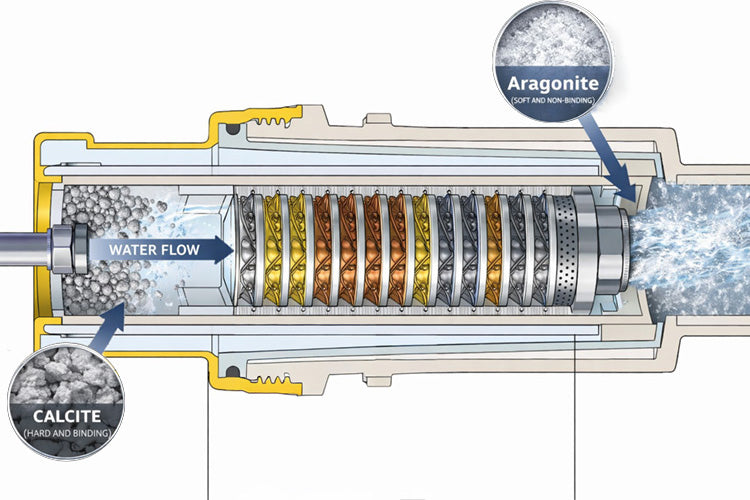 Questo fa sì che il carbonato di calcio rompa la sua forma cristallina di calcite, e cristallizzi in forma di aragonite, che ha la qualità di essere scarsamente incrostante (al contrario della calcite).